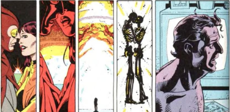 Fra i due amici scocca finalmente la scintilla e cominciano ad amoreggiare, spostandosi in camera da letto; Daniel tuttavia non riesce ad avere un’erezione, pur desiderando ardentemente Laurie, avvertendo un’ansia inspiegabile. Durante la notte, che i due passano insieme, Daniel fa un sogno terrificante: sogna che Laurie indossa il costume di un’altra supereroina, lui la stringe, i due si ritrovano nudi, si accarezzano, si ritrovano nuovamente vestiti, questa volta nei rispettivi costumi da supereroi. Daniel avverte una luce abbagliante, si volta e nota che un gigantesco fungo atomico sta per travolgere lui e Laurie. Questo sogno gli mette talmente tanto i brividi da costringerlo ad alzarsi e distrarsi, scendendo al pian terreno dove fissa il suo costume appeso al chiodo.