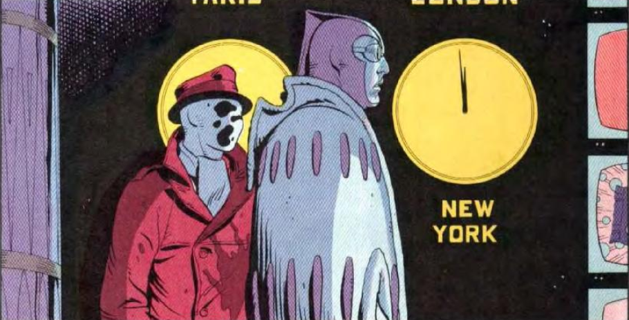Alan Moore, alla fine di ognuno dei dodici numeri che compongono l’opera, ha inserito un orologio che, a partire da sette minuti dalla mezzanotte, si avvicina progressivamente alla fine del mondo.