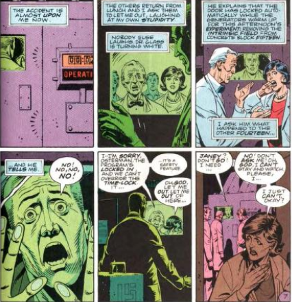 Nell’estate del 1959 Janey e Jonathan, dovendo prendere lo stesso treno che in Arizona li riporterà a casa ed essendo l’attesa piuttosto lunga, decisero di trascorrere un po’ di tempo ad un parco divertimenti. Mentre passeggiavano, un uomo alquanto corpulento urtò Janey, facendo sì che il cinturino difettoso del suo orologio si slacciasse; l’orologio cadde per terra, schiacciato dallo stesso omaccione, ignaro di tutto. Jonathan allora si offrì di ripararlo, mettendolo nel taschino della sua giacca. Qualche mese dopo, aggiustato l’orologio e ritornato a lavoro, Jonathan lo volle riconsegnare a Janey, ma lo aveva dimenticato nel taschino del camice da laboratorio nella camera di disintrinsecazione. Rientrato, a causa di un incidente, la porta della camera si chiude: